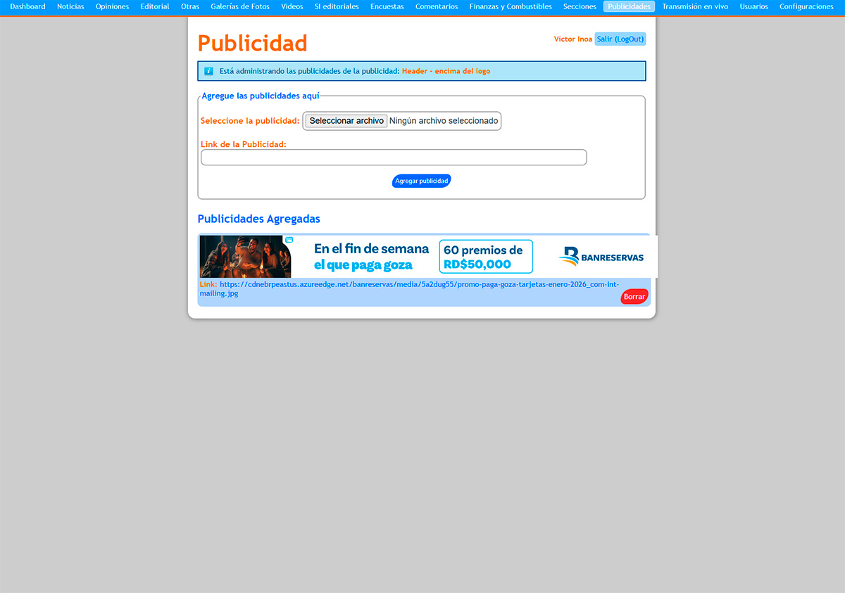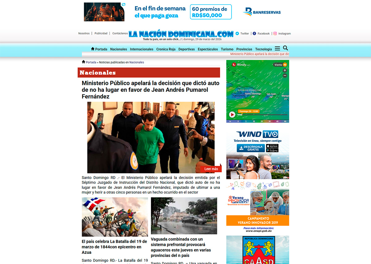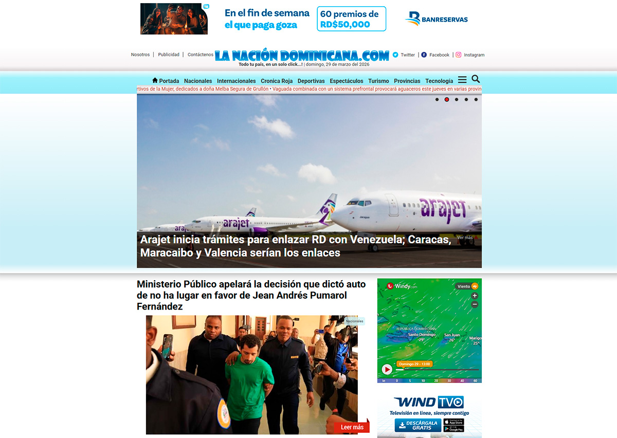 • Optimización Publicitaria: Integración nativa de espacios para banners (como se observa con Banreservas), ubicados estratégicamente en el header y laterales para monetización sin interrumpir la lectura.